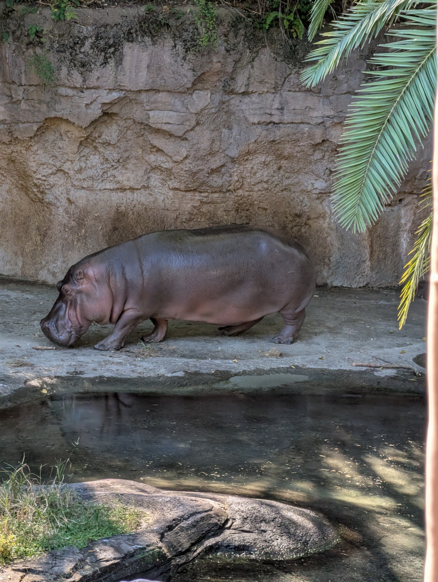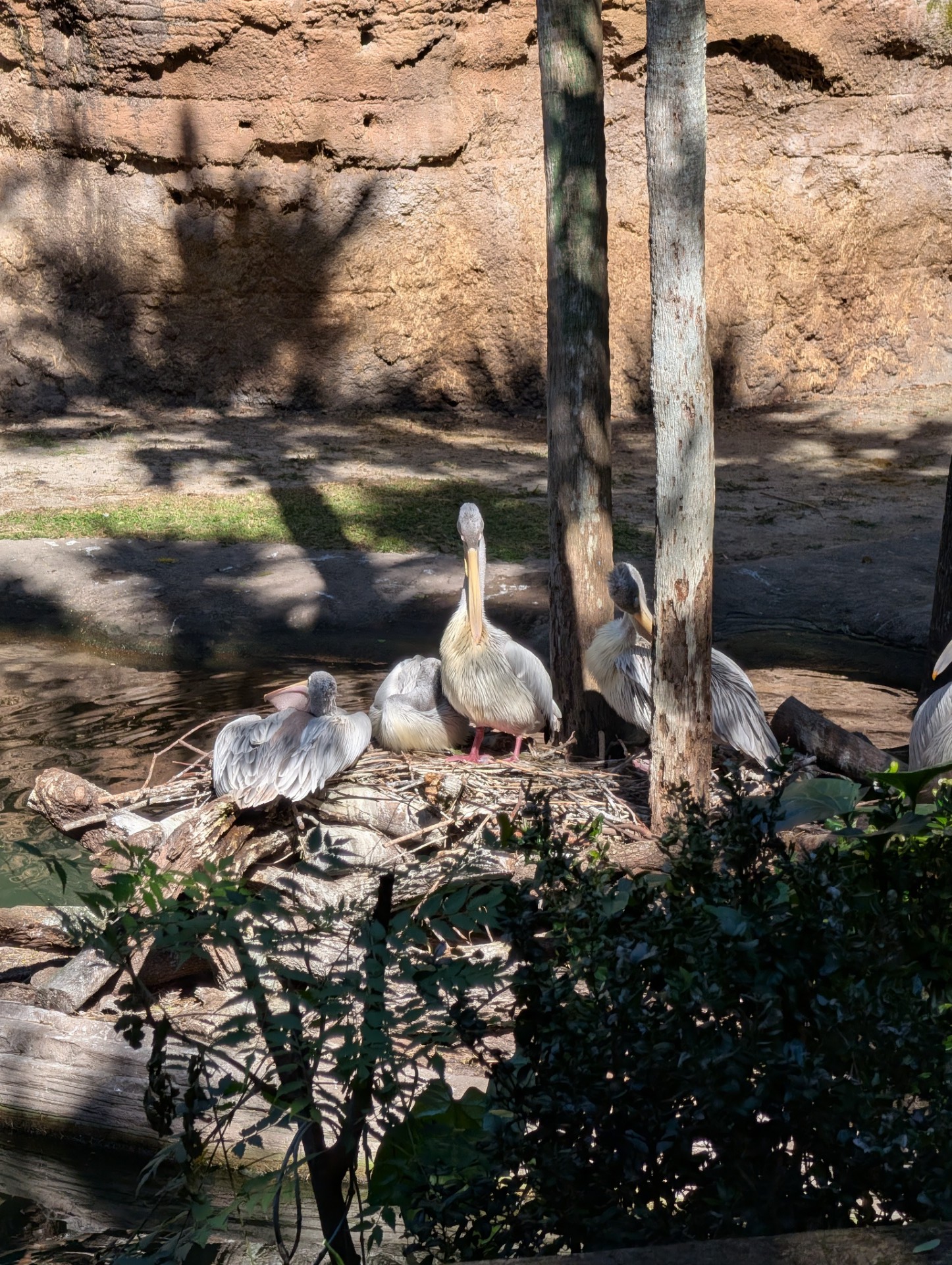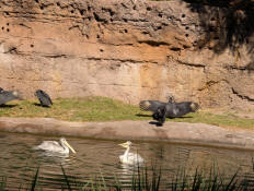 A few pink-backed pelicans sitting near the hippo pool.