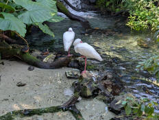 A couple of American-white ibises relaxing by the water.