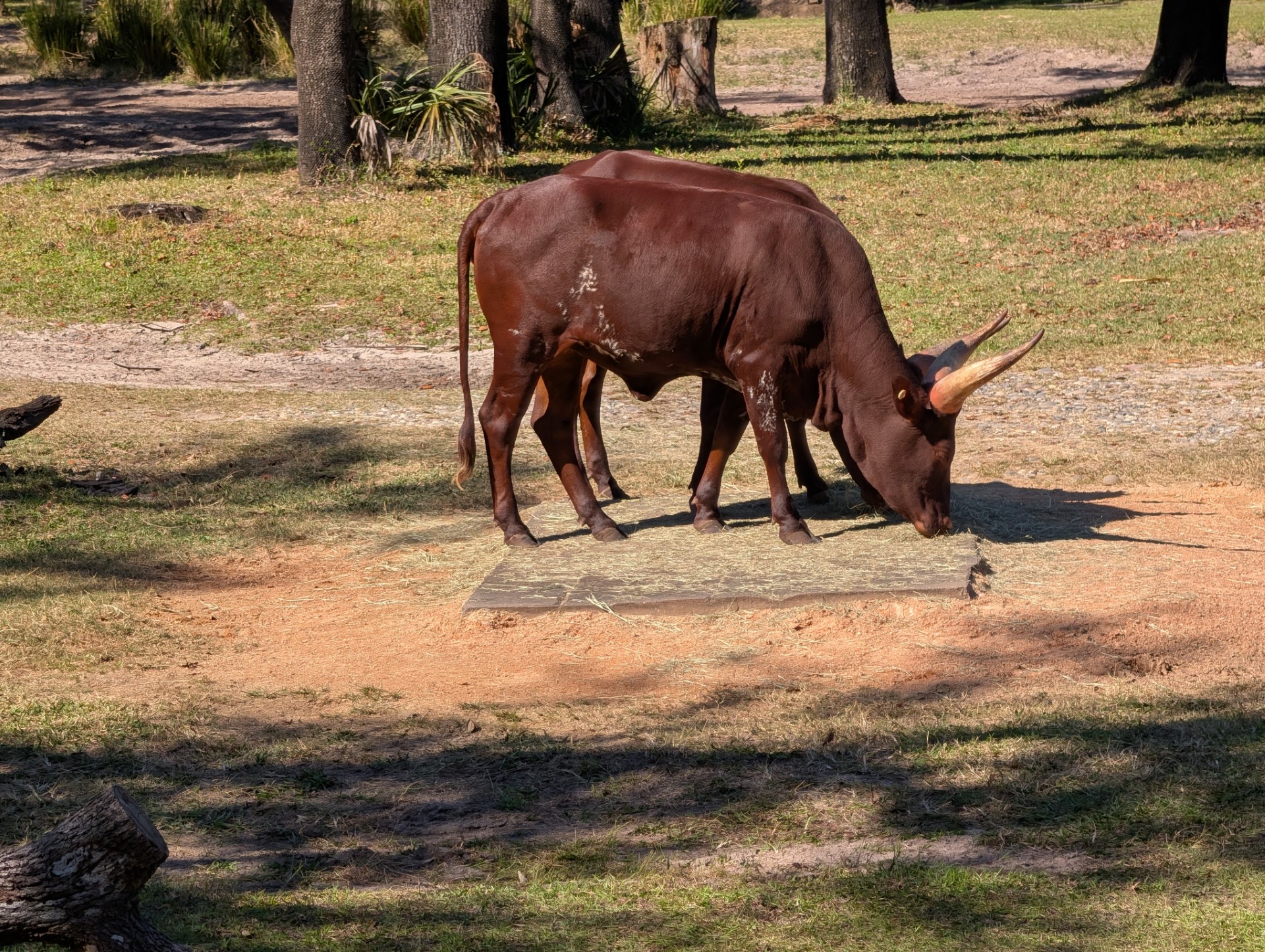 One of the Ankole-Watusi cattle enjoying a meal.