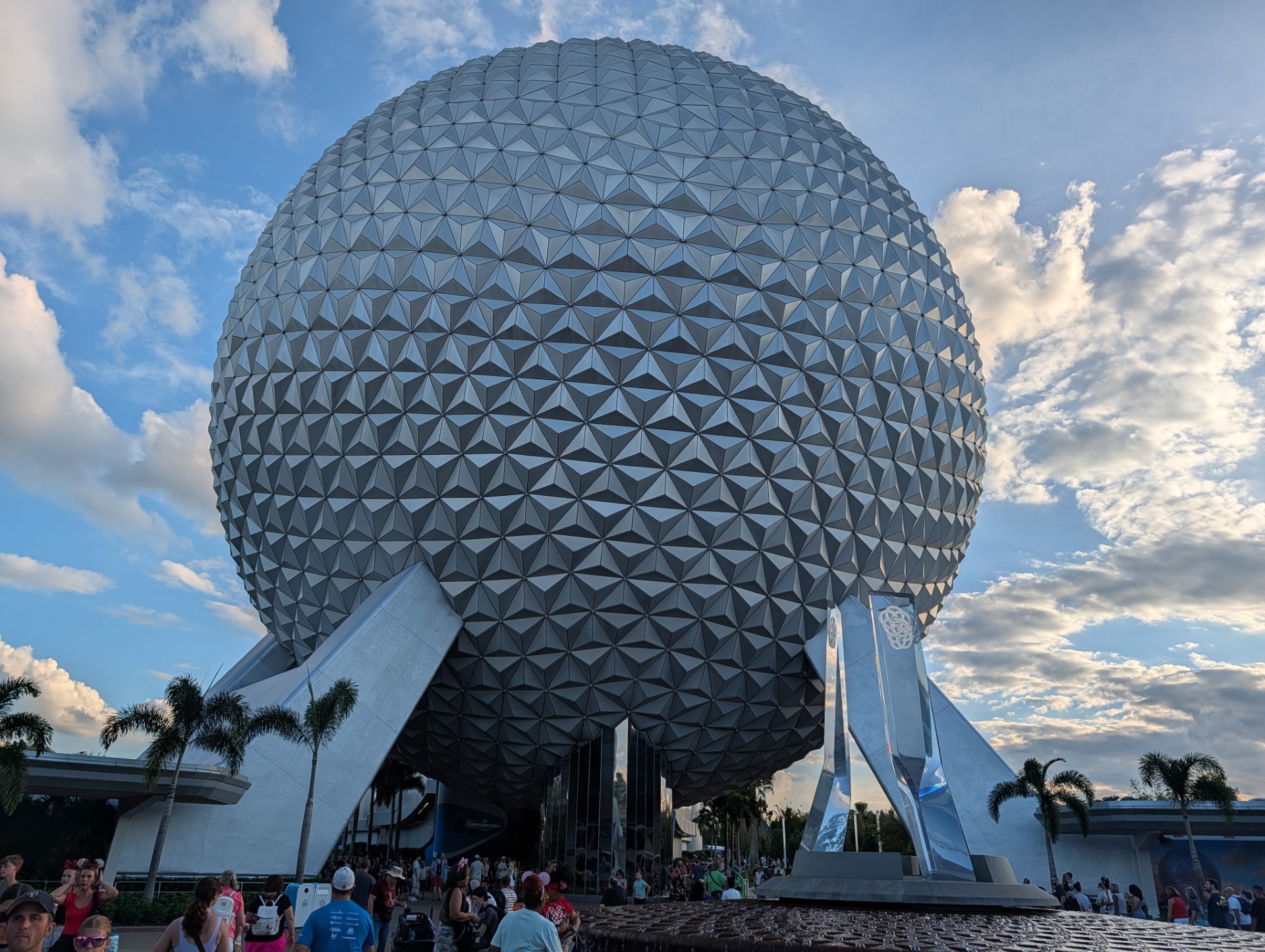 A couple shots of Spaceship Earth as we left Epcot...